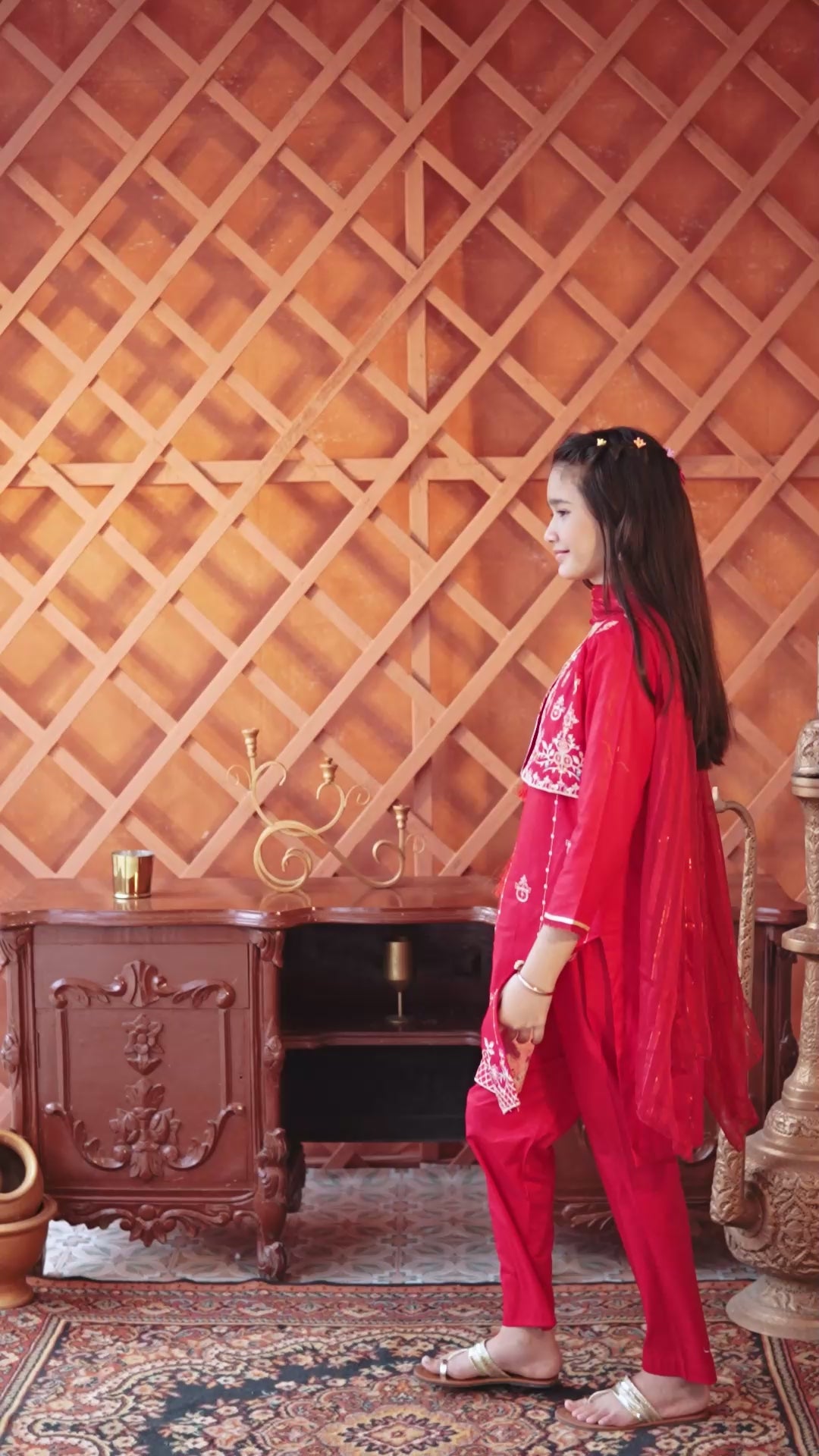 Koti style shirt & trouser with chiffon dupatta